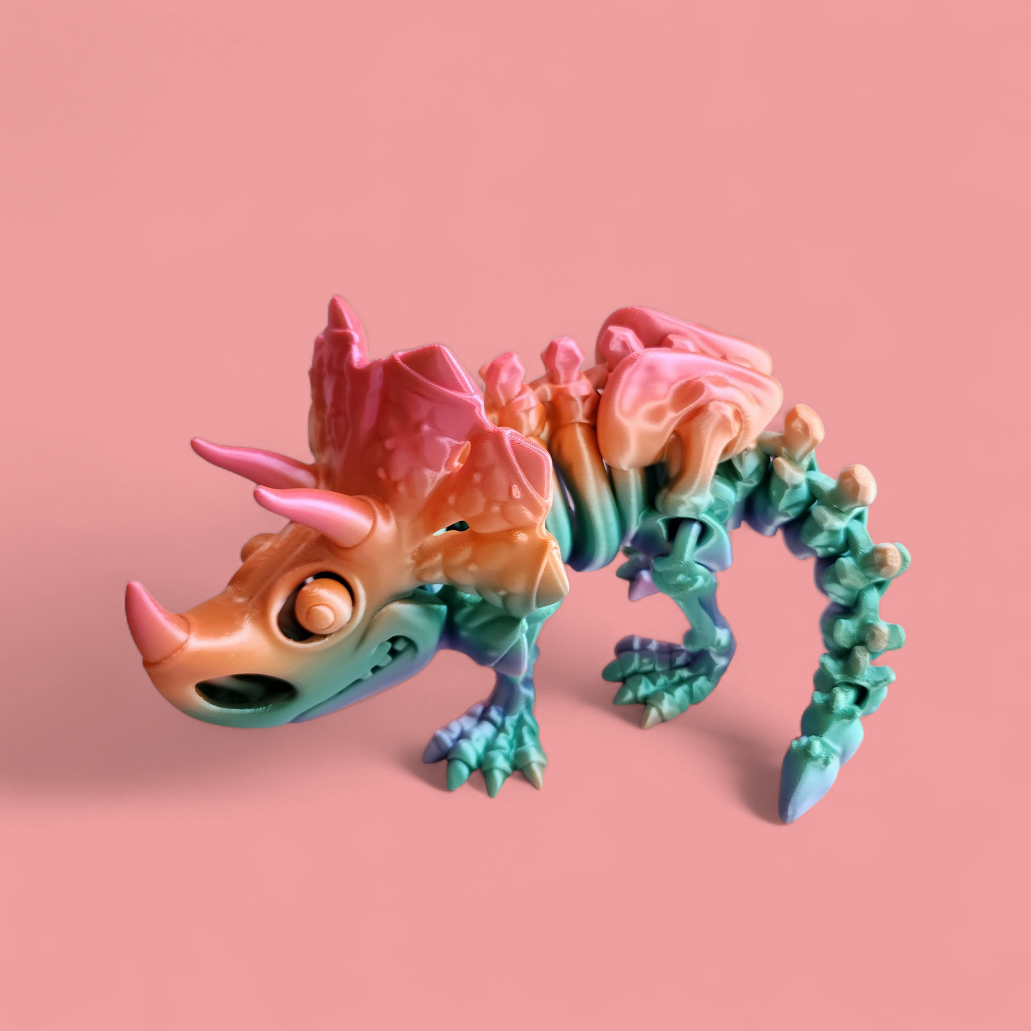 Features: Unique rainbow gradient finish (orange, pink, aqua tones) Triceratops-inspired skeleton design with detailed horns & tail Durable, lightweight material – perfect for play or display Great gift for dino lovers, kids, or collectors Use it as a fun desk buddy, a quirky decoration, or add it to your dinosaur collection. This dino is guaranteed to stand out!
